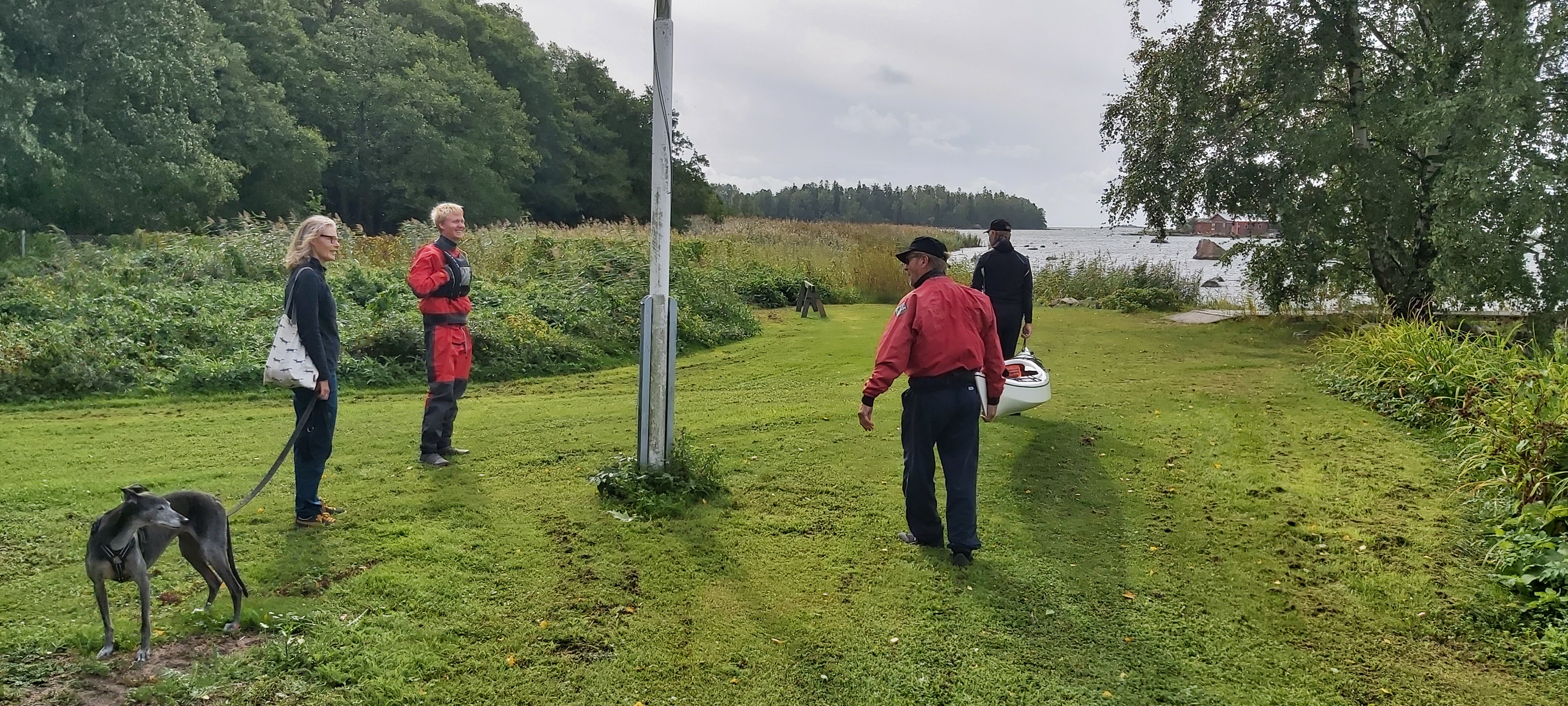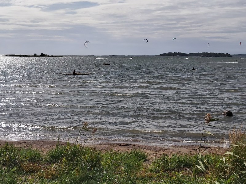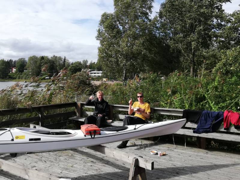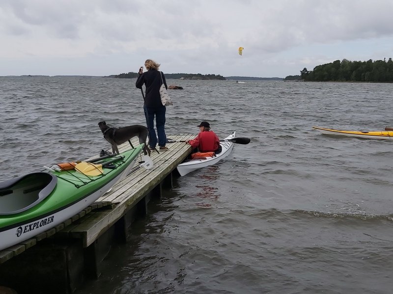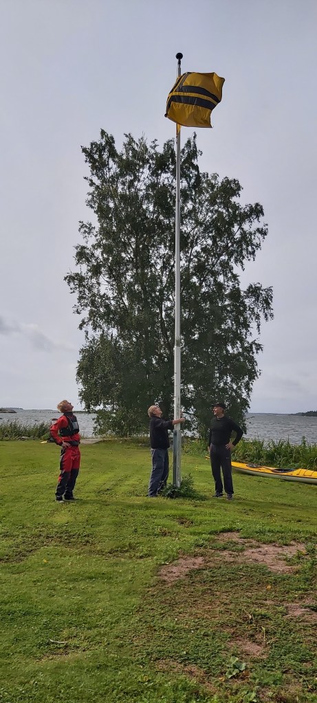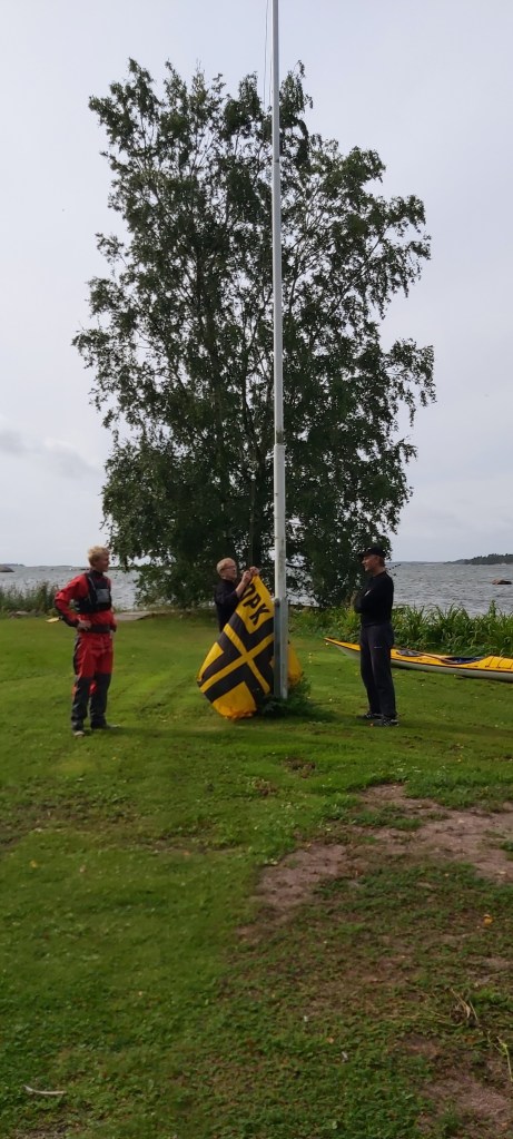 Drumsö runt med flaggan i topp, var en trevlig tillställning som vanligt. Vi paddlade runt ön i solsken och varma vindar. När vi kom tillbaka tränade vi lite eskimåsvängar. Efter byte till torra kläder avnjöt vi alla möjliga delikatesser från grillen som ordnats av Guy och Jonna. Här följer lite bilder av Guy, Jonna, och Peter (med Heikkis telefon).